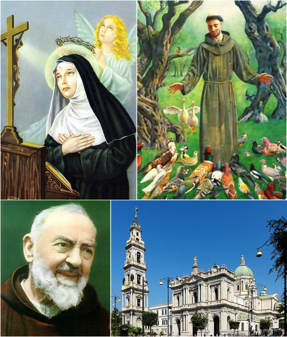 Ste Rita (Cascia), St François (Assise), Lorette (maison de la Ste Vierge), Lanicano (miracle eucharistique), St Padre Pio (Pietrelcina), St Michel (Mont Gargan), ND du Rosaire (Pompéi)…